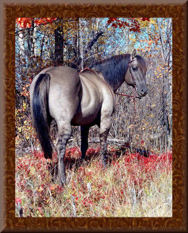 | Kansas City Twister 1995 Silver Grulla AQHA Stallion Homozygous Black -No Red Foals! Loaded With Dun Factor! Reg. 89% Foundation with the NFQHA Also Reg. with the IBHA and ABRA Stands 15.1hh with an excellent conformation Become a fan of Kansas City Twister on Facebook! Click on Picture for more info and Pics  |