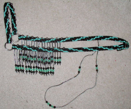 | Black / Turquoise (looks sea mint) Silver beads/hardware Matching fringe on the cheeks Sale Price: $28.00 |