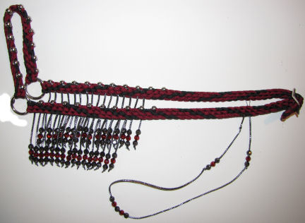 | Burgundy / Black Halter Silver beads/hardware Fringe with black/burgundy beads Sale Price: $30.00 |