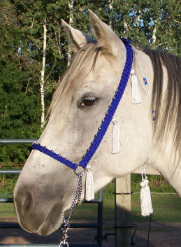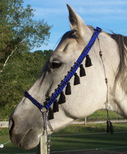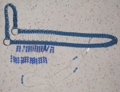 | Solid Royal Blue Halter Silver beads/hardware Matching fringe on the cheeks Sale Price: $28.00 Price with matching lead and chain: $50.00 |
