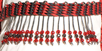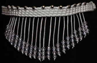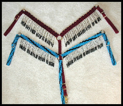 | Breast Collars Choose 1-3 colors Silver or gold beads/hardware Braided 1.35-1.5" wide Choose fringe w/beads or tassels Price with hanging beads or tassels: $55.00-$60.00 Price without: $45.00 |