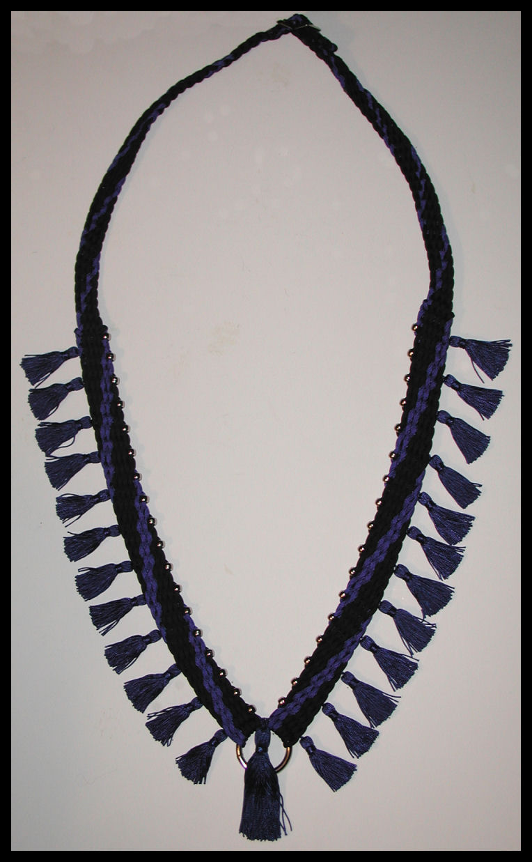 | Neck collars are made to match any show halter... Arabian or Miniature! Adjustable at the wither. Can be made with tassels or Fringe with beads. Arabian: $45.00 Miniature: $40.00 (Shown in black and electric royal blue) Small tassels are 2" with a 4" center tassel |